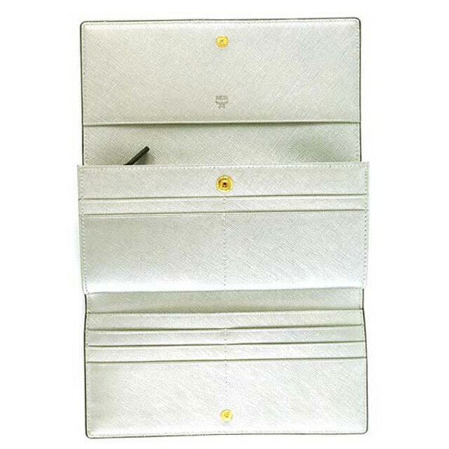 エムシーエム MCM 財布 MYL6SVC48 FLAP WALLET/TRI-FOLD LARGE フラップ 三つ折り長財布 BK001 ブラック+シルバー