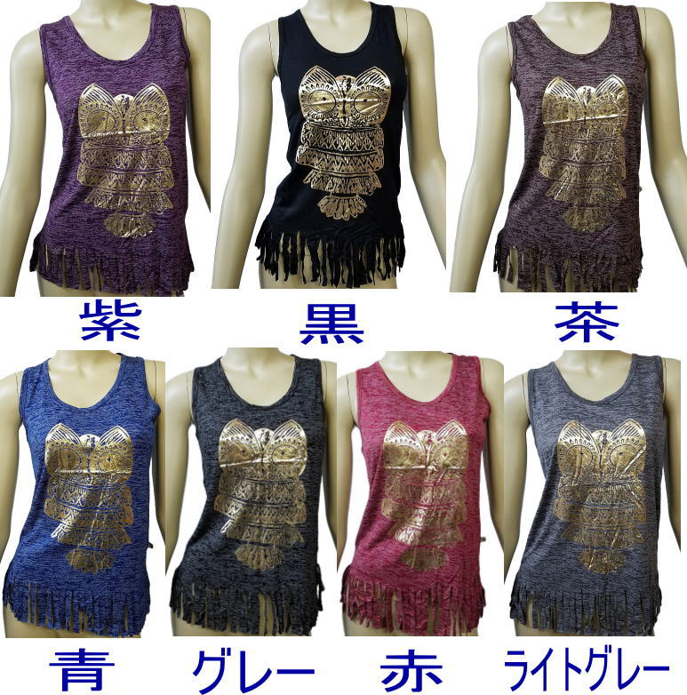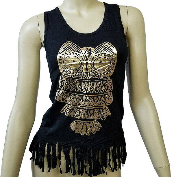 ゴールディふくろうレディスタンクトップ フリンジ【バリ・アジアン雑貨バリパラダイス】