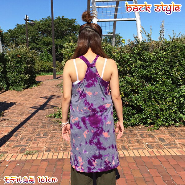のびのびストレッチ 着心地快適 レーヨン タイダイ Yバック チュニック エスニックレイヤード アジアン ストレッチ カジュアル レディース タンクトップ トップス ゆうパケット